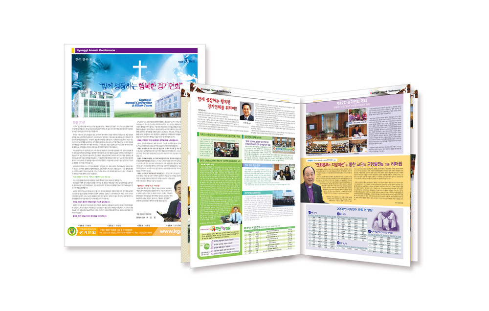 보통 교정을 컴퓨터 모니터나, 칼라 프린터로 출력해서 보시는 경우 모니터(빛의 색 RGB)와 인쇄물(잉크색 CMYK)에는 약간의 차이가 있습니다. 각 교회에서 사용되는 칼라 프린트도 옵셋 인쇄와는 인쇄 방식이 조금 달라 색상의 차이가 있습니다. 특히 종이의 재질(모조지, 아트지, 고급용지)에 의한 색의 차이도 발생할 수 있습니다.