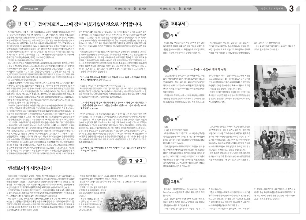 보통 교정을 컴퓨터 모니터나, 칼라 프린터로 출력해서 보시는 경우 모니터(빛의 색 RGB)와 인쇄물(잉크색 CMYK)에는 약간의 차이가 있습니다. 각 교회에서 사용되는 칼라 프린트도 옵셋 인쇄와는 인쇄 방식이 조금 달라 색상의 차이가 있습니다. 특히 종이의 재질(모조지, 아트지, 고급용지)에 의한 색의 차이도 발생할 수 있습니다.