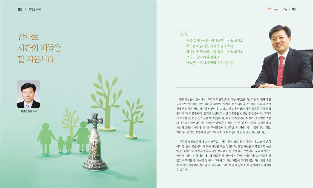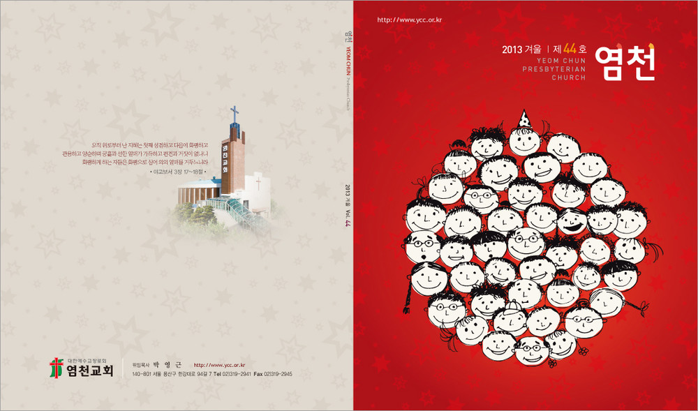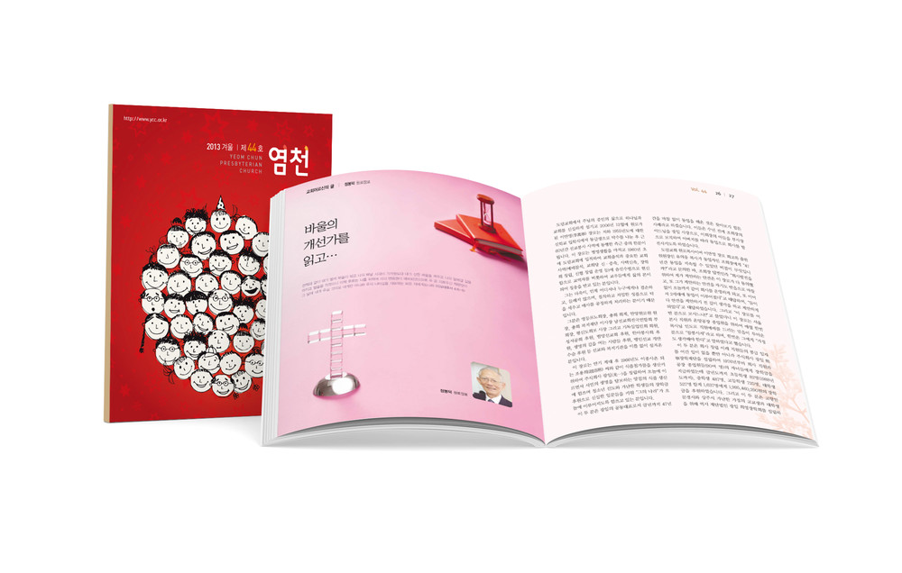 보통 교정을 컴퓨터 모니터나, 칼라 프린터로 출력해서 보시는 경우 모니터(빛의 색 RGB)와 인쇄물(잉크색 CMYK)에는 약간의 차이가 있습니다. 각 교회에서 사용되는 칼라 프린트도 옵셋 인쇄와는 인쇄 방식이 조금 달라 색상의 차이가 있습니다. 특히 종이의 재질(모조지, 아트지, 고급용지)에 의한 색의 차이도 발생할 수 있습니다.