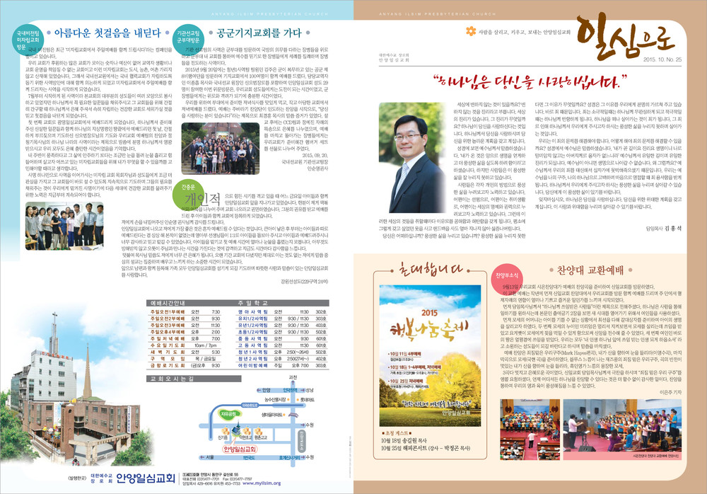보통 교정을 컴퓨터 모니터나, 칼라 프린터로 출력해서 보시는 경우 모니터(빛의 색 RGB)와 인쇄물(잉크색 CMYK)에는 약간의 차이가 있습니다. 각 교회에서 사용되는 칼라 프린트도 옵셋 인쇄와는 인쇄 방식이 조금 달라 색상의 차이가 있습니다. 특히 종이의 재질(모조지, 아트지, 고급용지)에 의한 색의 차이도 발생할 수 있습니다.