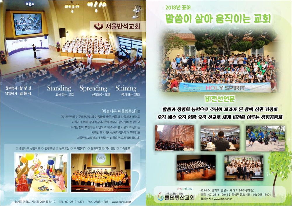 보통 교정을 컴퓨터 모니터나, 칼라 프린터로 출력해서 보시는 경우 모니터(빛의 색 RGB)와 인쇄물(잉크색 CMYK)에는 약간의 차이가 있습니다. 각 교회에서 사용되는 칼라 프린트도 옵셋 인쇄와는 인쇄 방식이 조금 달라 색상의 차이가 있습니다. 특히 종이의 재질(모조지, 아트지, 고급용지)에 의한 색의 차이도 발생할 수 있습니다.