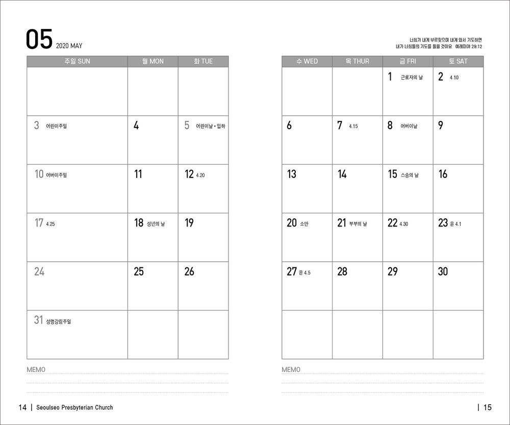 해마다 연초가 되면 교회에서 요람이나 수첩 등을 나누어 줍니다. 하지만 받고나면 한번보곤 말지요. 필요가 없어서일 수도 있지만 복잡하고 어수선한 이유일 수도 있습니다. 저희 그리심에서는 일정한 편집과 디자인으로 제작해 드립니다. 매년 제작하다보면 요람이나 수첩이 작은 역사책이 되어 우리교회의 역사를 아는데 많은 도움이 되곤합니다.