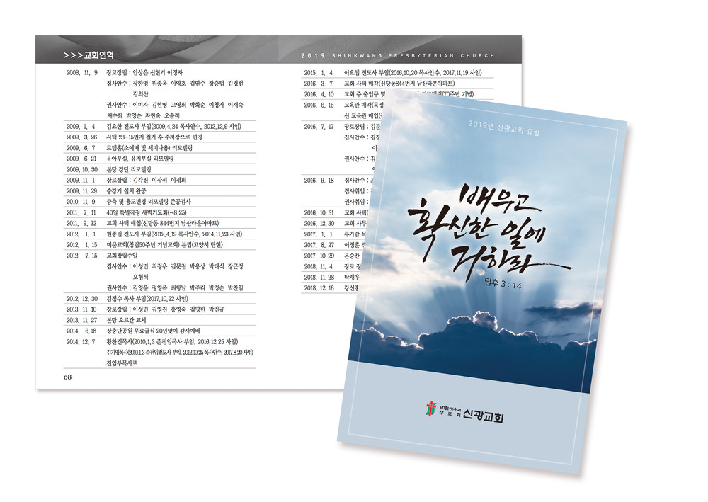 보통 교정을 컴퓨터 모니터나, 칼라 프린터로 출력해서 보시는 경우 모니터(빛의 색 RGB)와 인쇄물(잉크색 CMYK)에는 약간의 차이가 있습니다. 각 교회에서 사용되는 칼라 프린트도 옵셋 인쇄와는 인쇄 방식이 조금 달라 색상의 차이가 있습니다. 특히 종이의 재질(모조지, 아트지, 고급용지)에 의한 색의 차이도 발생할 수 있습니다.