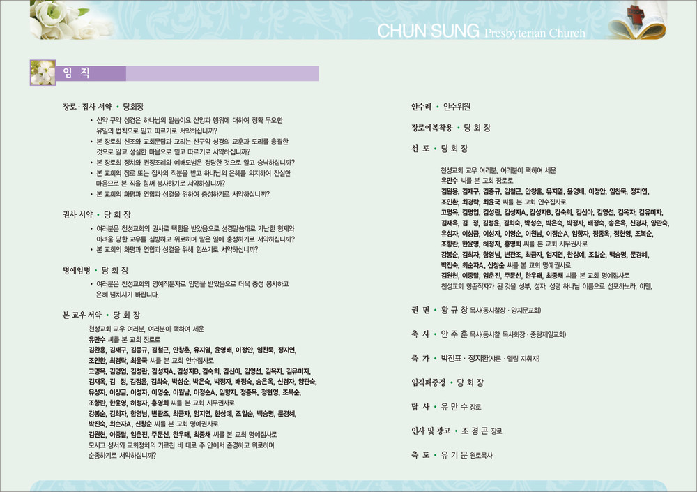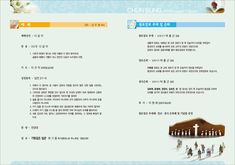 보통 교정을 컴퓨터 모니터나, 칼라 프린터로 출력해서 보시는 경우 모니터(빛의 색 RGB)와 인쇄물(잉크색 CMYK)에는 약간의 차이가 있습니다. 각 교회에서 사용되는 칼라 프린트도 옵셋 인쇄와는 인쇄 방식이 조금 달라 색상의 차이가 있습니다. 특히 종이의 재질(모조지, 아트지, 고급용지)에 의한 색의 차이도 발생할 수 있습니다.