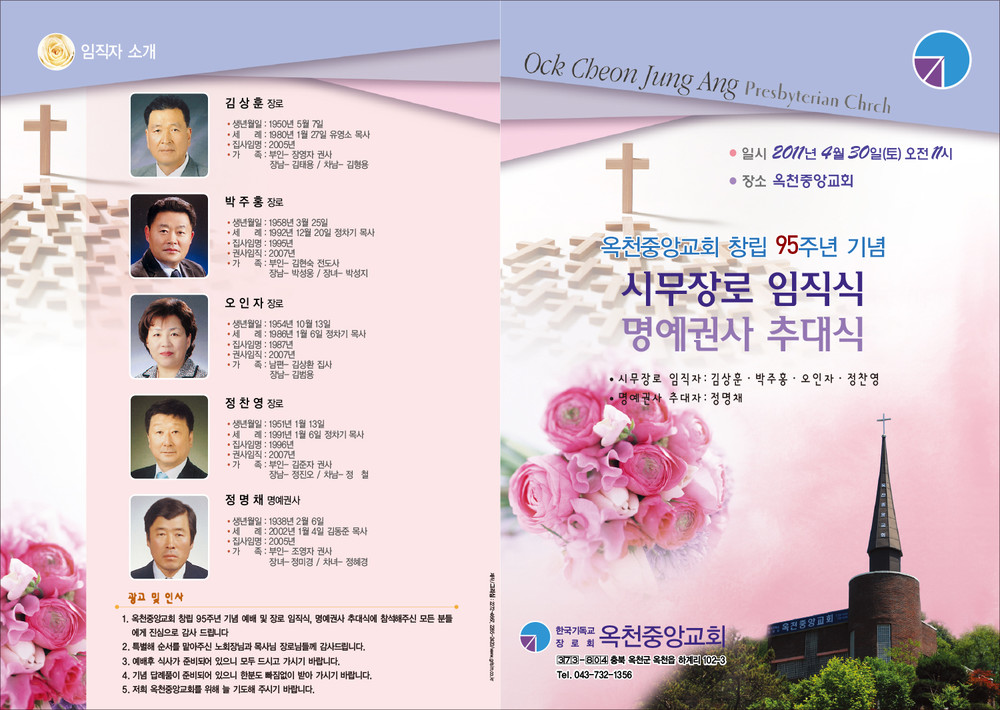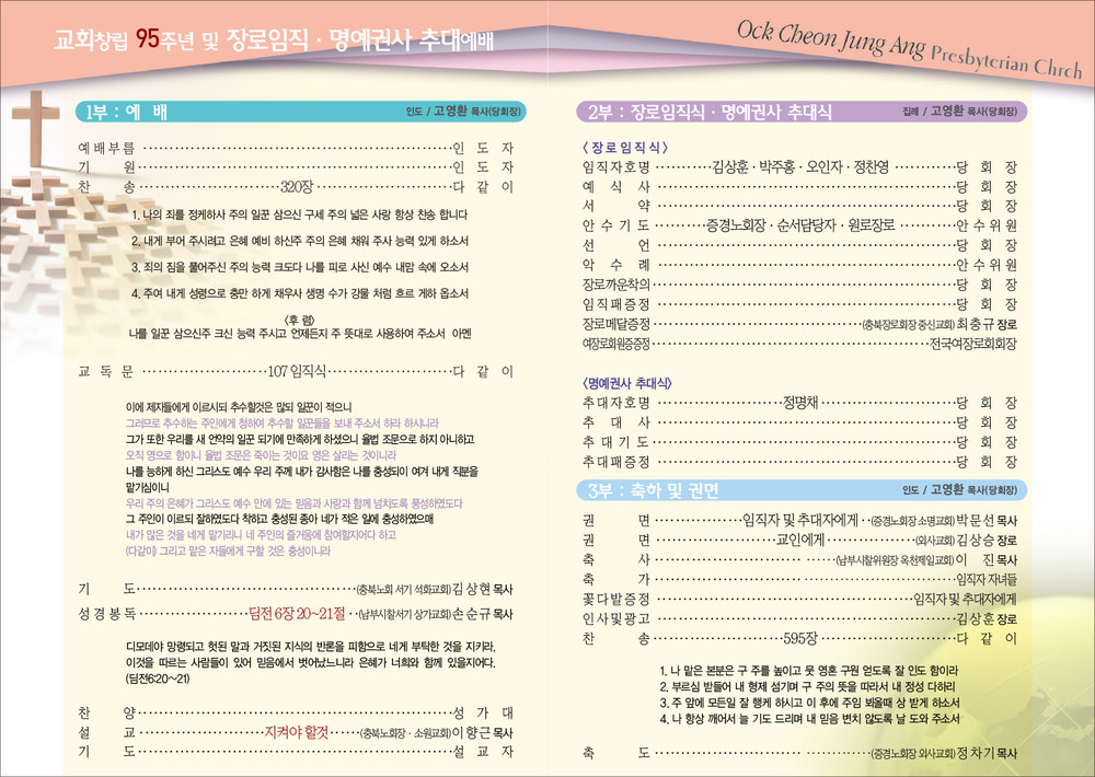 옥천중앙교회 임직예배 순서지