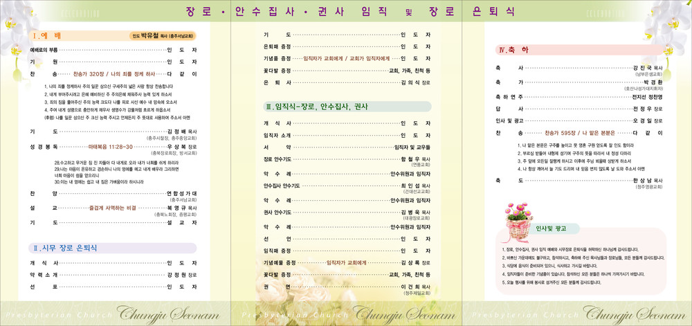 보통 교정을 컴퓨터 모니터나, 칼라 프린터로 출력해서 보시는 경우 모니터(빛의 색 RGB)와 인쇄물(잉크색 CMYK)에는 약간의 차이가 있습니다. 각 교회에서 사용되는 칼라 프린트도 옵셋 인쇄와는 인쇄 방식이 조금 달라 색상의 차이가 있습니다. 특히 종이의 재질(모조지, 아트지, 고급용지)에 의한 색의 차이도 발생할 수 있습니다.