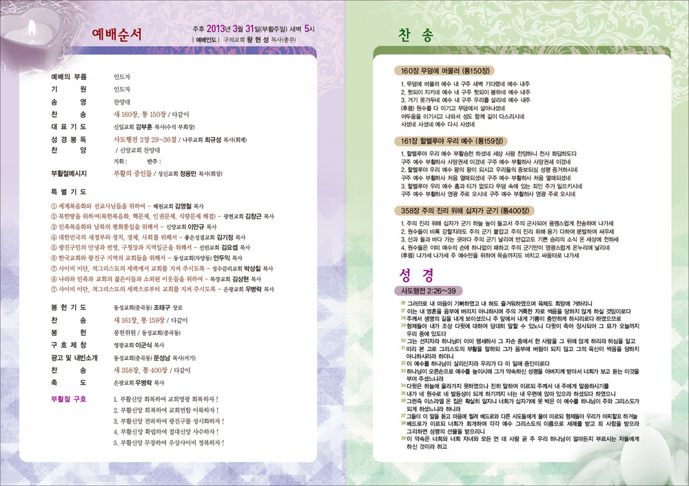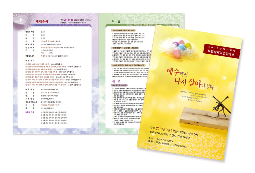 보통 교정을 컴퓨터 모니터나, 칼라 프린터로 출력해서 보시는 경우 모니터(빛의 색 RGB)와 인쇄물(잉크색 CMYK)에는 약간의 차이가 있습니다. 각 교회에서 사용되는 칼라 프린트도 옵셋 인쇄와는 인쇄 방식이 조금 달라 색상의 차이가 있습니다. 특히 종이의 재질(모조지, 아트지, 고급용지)에 의한 색의 차이도 발생할 수 있습니다.
