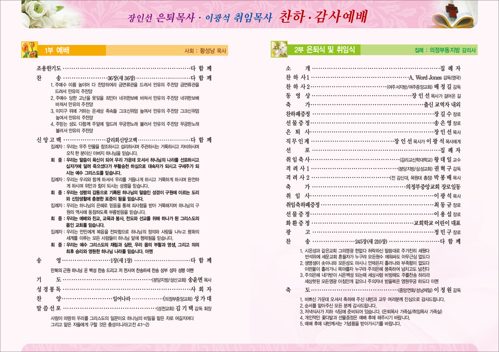 보통 교정을 컴퓨터 모니터나, 칼라 프린터로 출력해서 보시는 경우 모니터(빛의 색 RGB)와 인쇄물(잉크색 CMYK)에는 약간의 차이가 있습니다. 각 교회에서 사용되는 칼라 프린트도 옵셋 인쇄와는 인쇄 방식이 조금 달라 색상의 차이가 있습니다. 특히 종이의 재질(모조지, 아트지, 고급용지)에 의한 색의 차이도 발생할 수 있습니다.