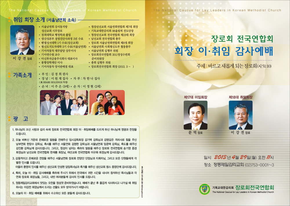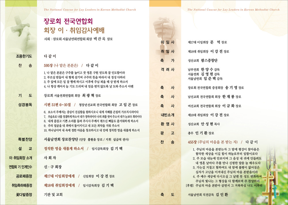 장로회 회장이/취임예배 순서지