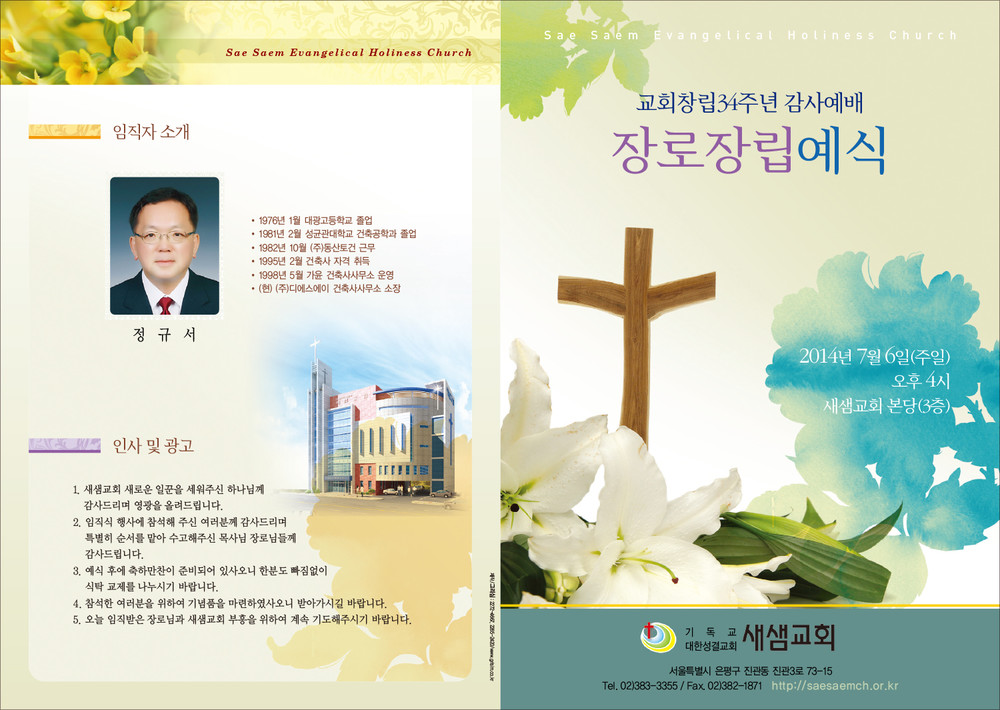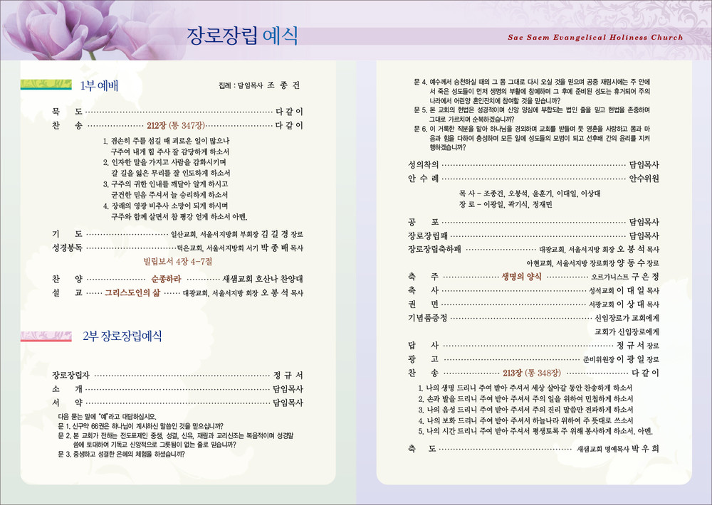 새샘성결교회 임직예배 순서지