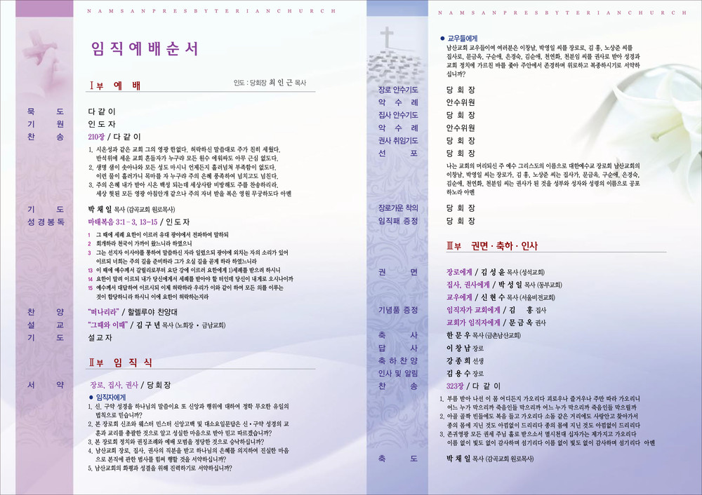 보통 교정을 컴퓨터 모니터나, 칼라 프린터로 출력해서 보시는 경우 모니터(빛의 색 RGB)와 인쇄물(잉크색 CMYK)에는 약간의 차이가 있습니다. 각 교회에서 사용되는 칼라 프린트도 옵셋 인쇄와는 인쇄 방식이 조금 달라 색상의 차이가 있습니다. 특히 종이의 재질(모조지, 아트지, 고급용지)에 의한 색의 차이도 발생할 수 있습니다.
