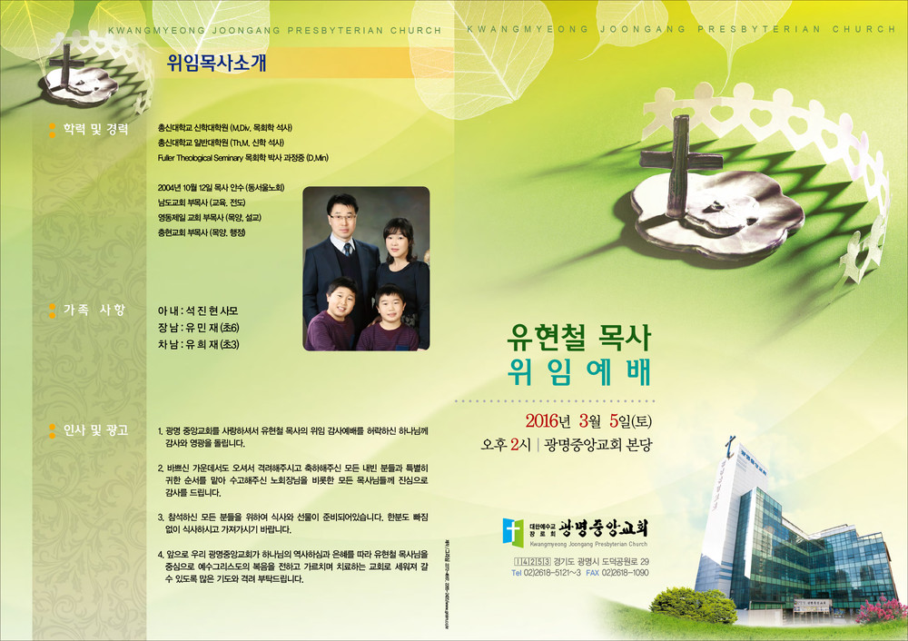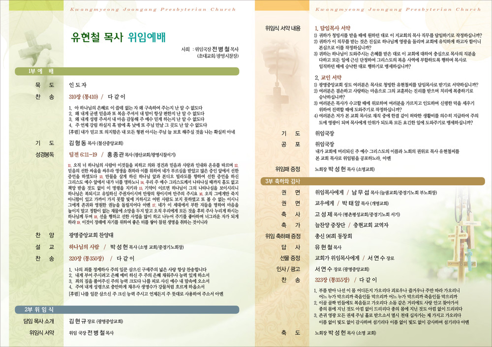 광명중앙교회 위임예배 순서지