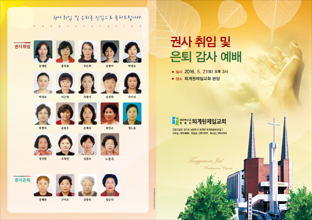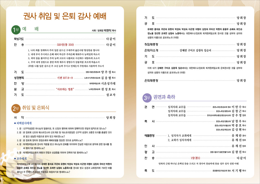 퇴계원제일교회 임직예배 순서지