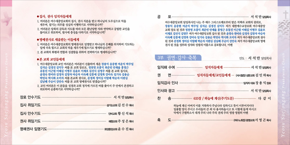 보통 교정을 컴퓨터 모니터나, 칼라 프린터로 출력해서 보시는 경우 모니터(빛의 색 RGB)와 인쇄물(잉크색 CMYK)에는 약간의 차이가 있습니다. 각 교회에서 사용되는 칼라 프린트도 옵셋 인쇄와는 인쇄 방식이 조금 달라 색상의 차이가 있습니다. 특히 종이의 재질(모조지, 아트지, 고급용지)에 의한 색의 차이도 발생할 수 있습니다.