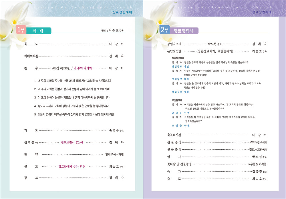 보통 교정을 컴퓨터 모니터나, 칼라 프린터로 출력해서 보시는 경우 모니터(빛의 색 RGB)와 인쇄물(잉크색 CMYK)에는 약간의 차이가 있습니다. 각 교회에서 사용되는 칼라 프린트도 옵셋 인쇄와는 인쇄 방식이 조금 달라 색상의 차이가 있습니다. 특히 종이의 재질(모조지, 아트지, 고급용지)에 의한 색의 차이도 발생할 수 있습니다.