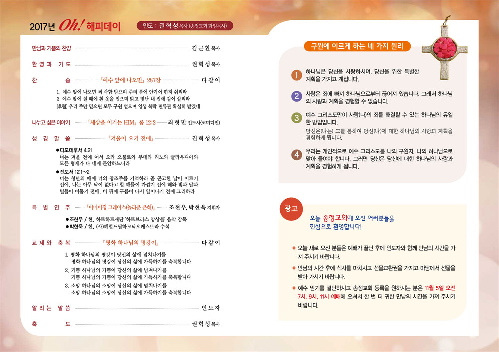 송정교회 새가족초청예배 순서지