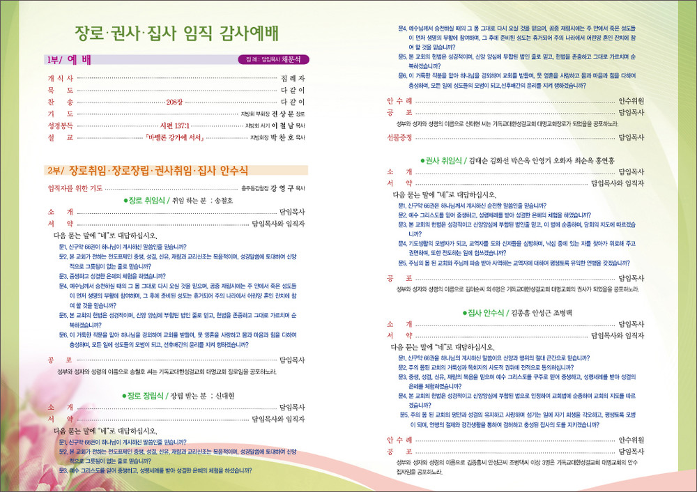 대명교회 임직예배 순서지