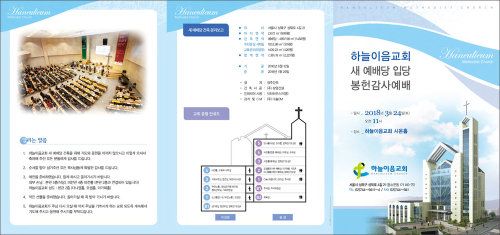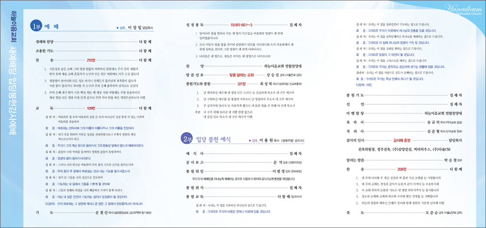 하늘이음교회 입당예배 순서지