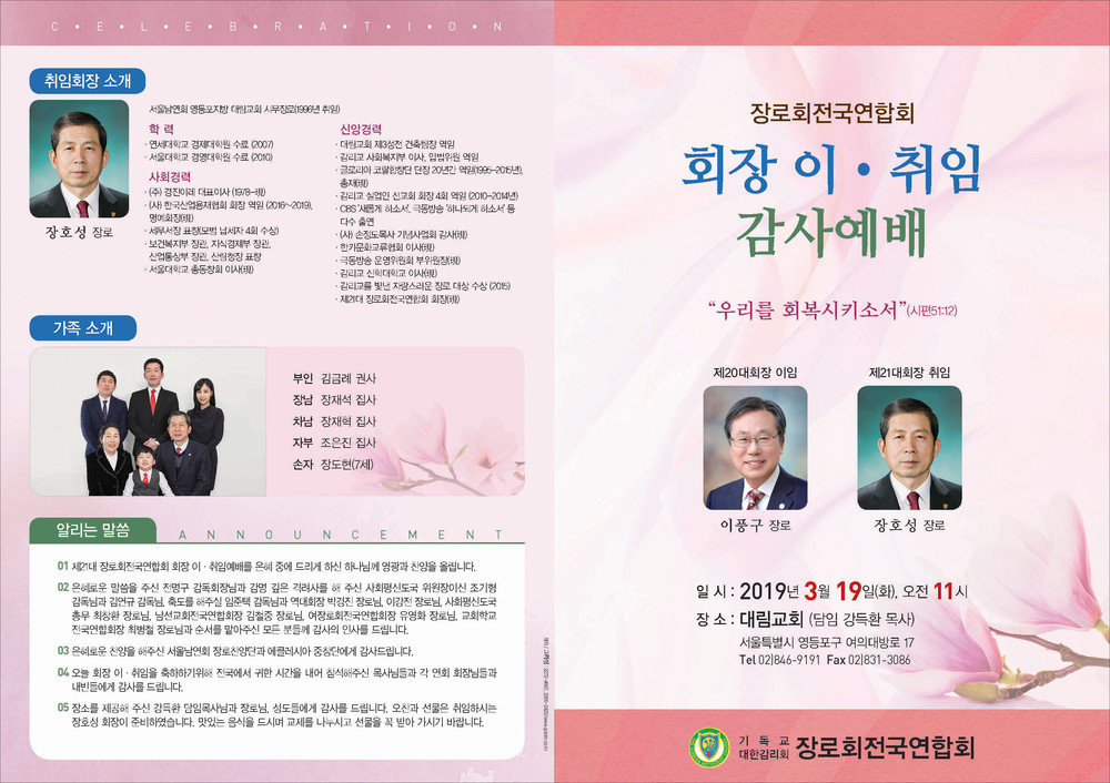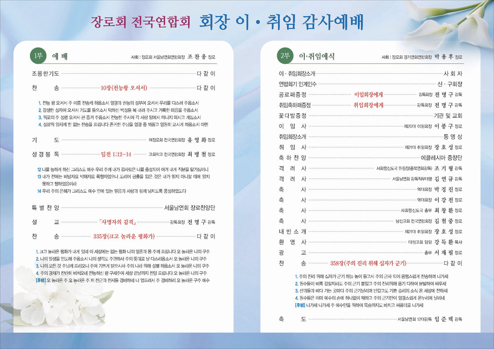 장로회전국연합회 회장 이.취임 감사예배 순서지