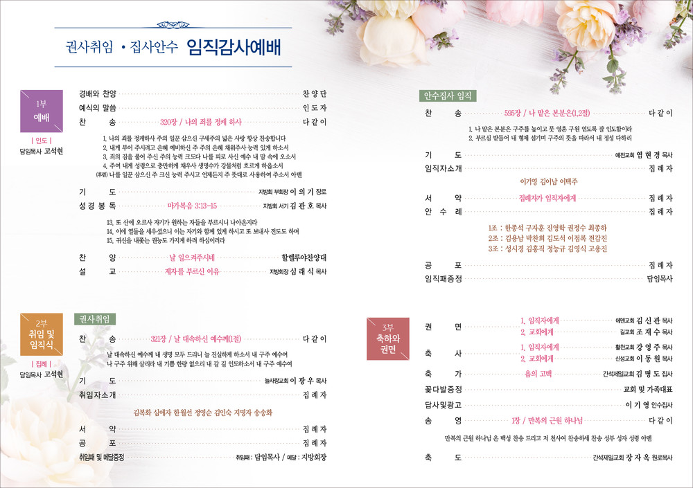 보통 교정을 컴퓨터 모니터나, 칼라 프린터로 출력해서 보시는 경우 모니터(빛의 색 RGB)와 인쇄물(잉크색 CMYK)에는 약간의 차이가 있습니다. 각 교회에서 사용되는 칼라 프린트도 옵셋 인쇄와는 인쇄 방식이 조금 달라 색상의 차이가 있습니다. 특히 종이의 재질(모조지, 아트지, 고급용지)에 의한 색의 차이도 발생할 수 있습니다.