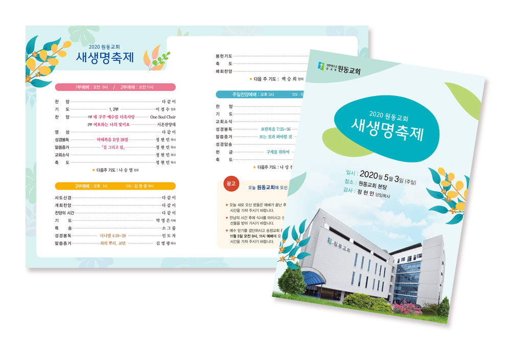 보통 교정을 컴퓨터 모니터나, 칼라 프린터로 출력해서 보시는 경우 모니터(빛의 색 RGB)와 인쇄물(잉크색 CMYK)에는 약간의 차이가 있습니다. 각 교회에서 사용되는 칼라 프린트도 옵셋 인쇄와는 인쇄 방식이 조금 달라 색상의 차이가 있습니다. 특히 종이의 재질(모조지, 아트지, 고급용지)에 의한 색의 차이도 발생할 수 있습니다.
