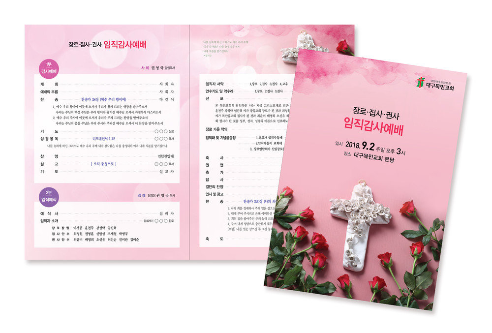 보통 교정을 컴퓨터 모니터나, 칼라 프린터로 출력해서 보시는 경우 모니터(빛의 색 RGB)와 인쇄물(잉크색 CMYK)에는 약간의 차이가 있습니다. 각 교회에서 사용되는 칼라 프린트도 옵셋 인쇄와는 인쇄 방식이 조금 달라 색상의 차이가 있습니다. 특히 종이의 재질(모조지, 아트지, 고급용지)에 의한 색의 차이도 발생할 수 있습니다.