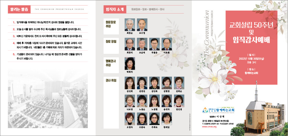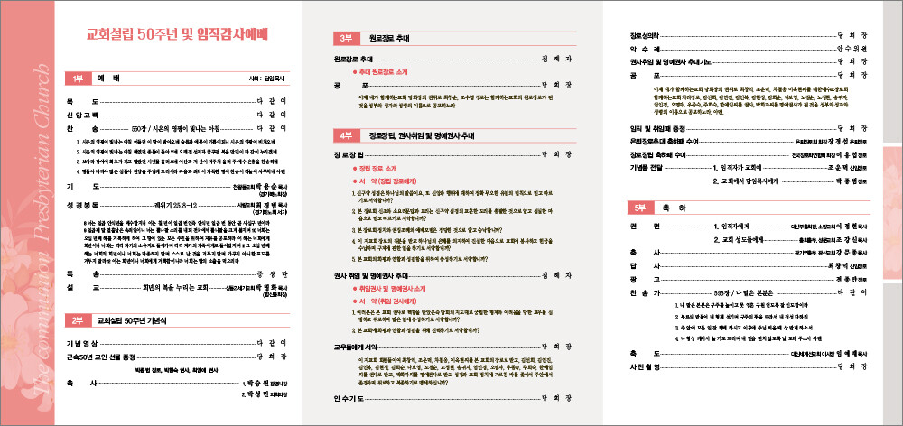 보통 교정을 컴퓨터 모니터나, 칼라 프린터로 출력해서 보시는 경우 모니터(빛의 색 RGB)와 인쇄물(잉크색 CMYK)에는 약간의 차이가 있습니다. 각 교회에서 사용되는 칼라 프린트도 옵셋 인쇄와는 인쇄 방식이 조금 달라 색상의 차이가 있습니다. 특히 종이의 재질(모조지, 아트지, 고급용지)에 의한 색의 차이도 발생할 수 있습니다.
