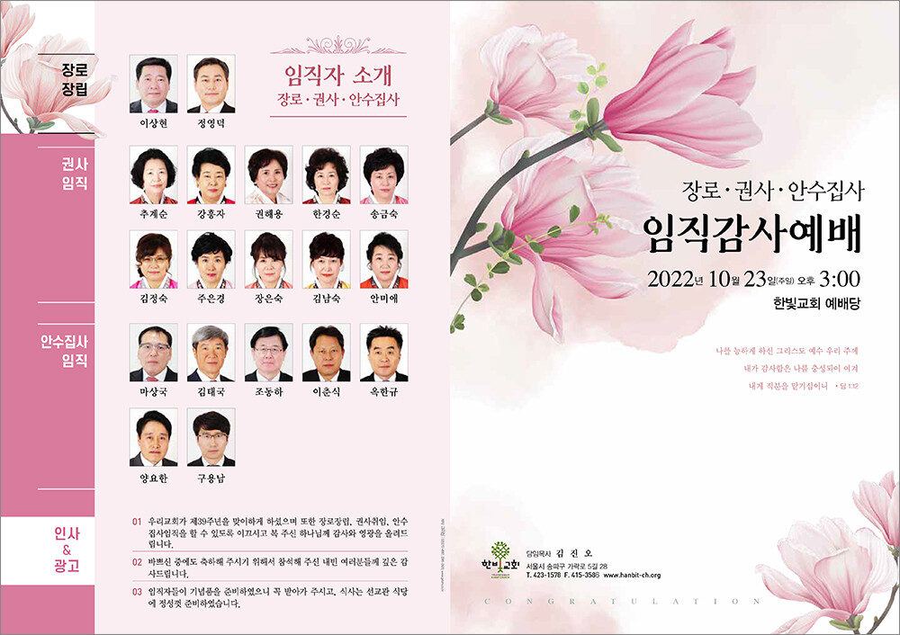 보통 교정을 컴퓨터 모니터나, 칼라 프린터로 출력해서 보시는 경우 모니터(빛의 색 RGB)와 인쇄물(잉크색 CMYK)에는 약간의 차이가 있습니다. 각 교회에서 사용되는 칼라 프린트도 옵셋 인쇄와는 인쇄 방식이 조금 달라 색상의 차이가 있습니다. 특히 종이의 재질(모조지, 아트지, 고급용지)에 의한 색의 차이도 발생할 수 있습니다.