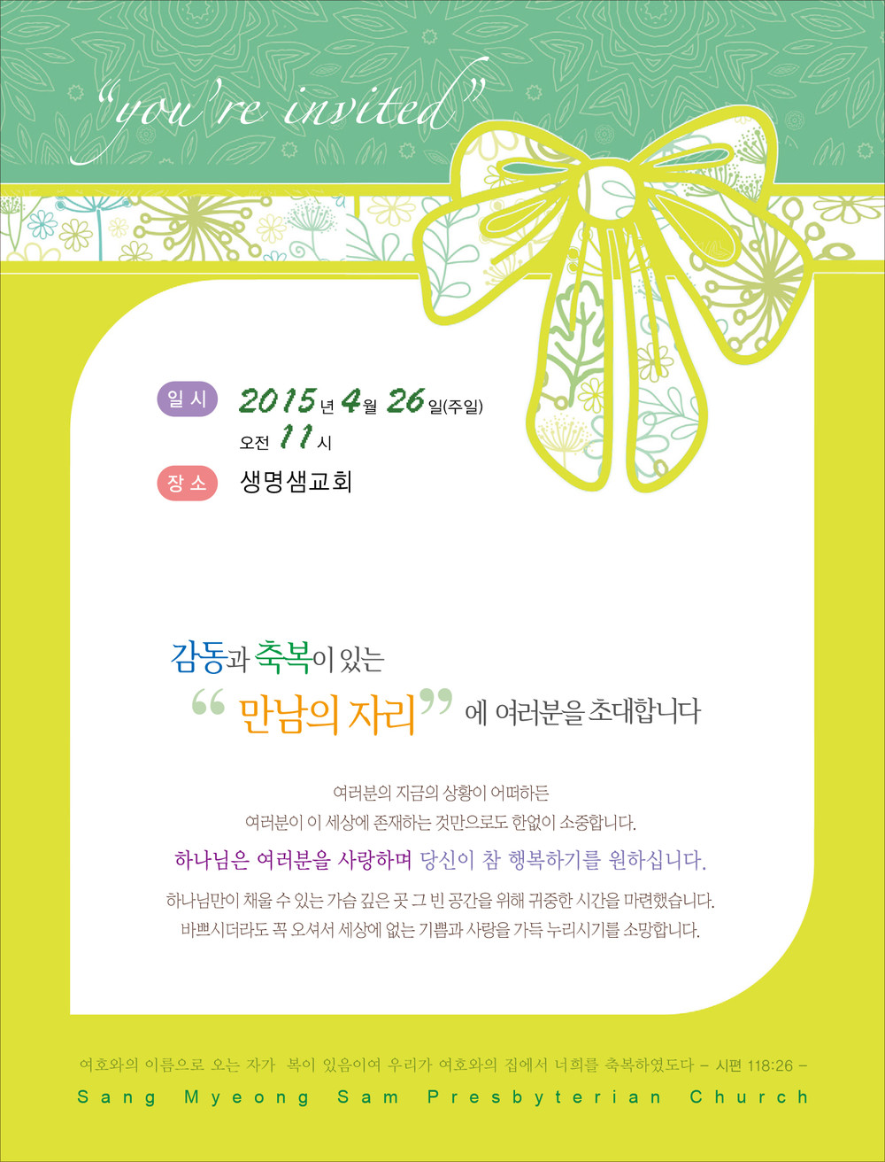 저희 그리심에서 디자인에 더 많은 신경을 쓰다보면 오·탈자를 미처 확인 못할 때가 있습니다. 특히 내용을 전화로 불러주시거나 부득이하게 텍스트를 저희가 타이핑했을 경우 더욱 철저하게 교정을 봐주셔야 합니다.