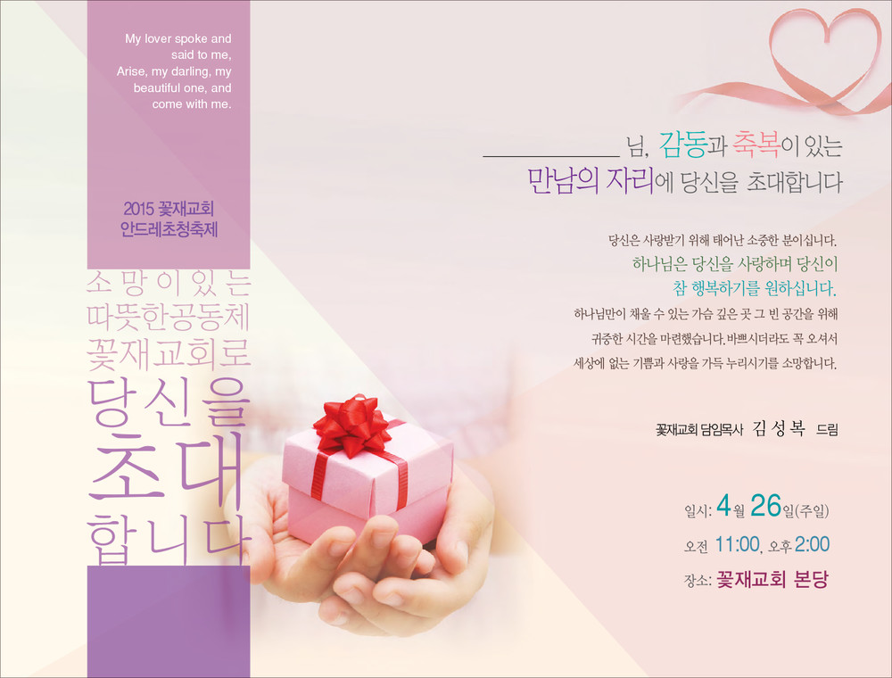 저희 그리심에서 디자인에 더 많은 신경을 쓰다보면 오·탈자를 미처 확인 못할 때가 있습니다. 특히 내용을 전화로 불러주시거나 부득이하게 텍스트를 저희가 타이핑했을 경우 더욱 철저하게 교정을 봐주셔야 합니다.