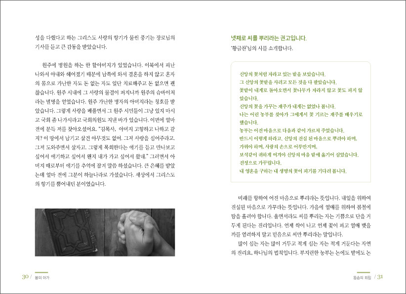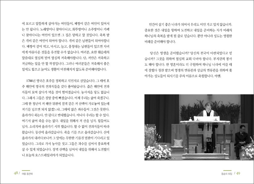 우리 목사님의 은혜롭고 귀한설교 말씀, 우리 삶의 나침반이 되어주는 칼럼, 오랜세월을 살면서 주님으로 인해 행복했던 일을 정리하는 회고록 등을 편안하고 짜임새 있는 디자인과 편집으로 설교집, 칼럼집, 회고록 등을 제작하여 드립니다.