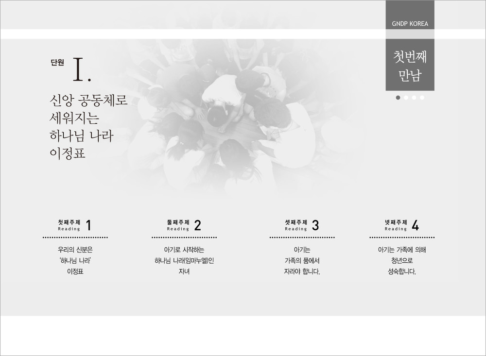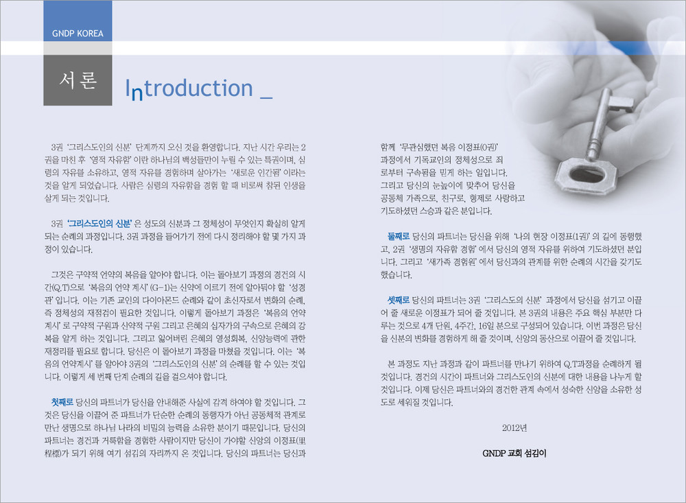 교회는 교육으로 신실한 크리스천을 세우며, 새루운 신자를 양육하고 교육하여 하나님의 자녀들로 키우는 곳입니다. 각 교회별로 특성에 맞는 교재를 만들어 사용하고 있으나 디자인이 조잡하여 교육에 장애가 되는 경우가 있습니다. 저희 그리심에서는 좋은 디자인의 교재를 제작해 드립니다.