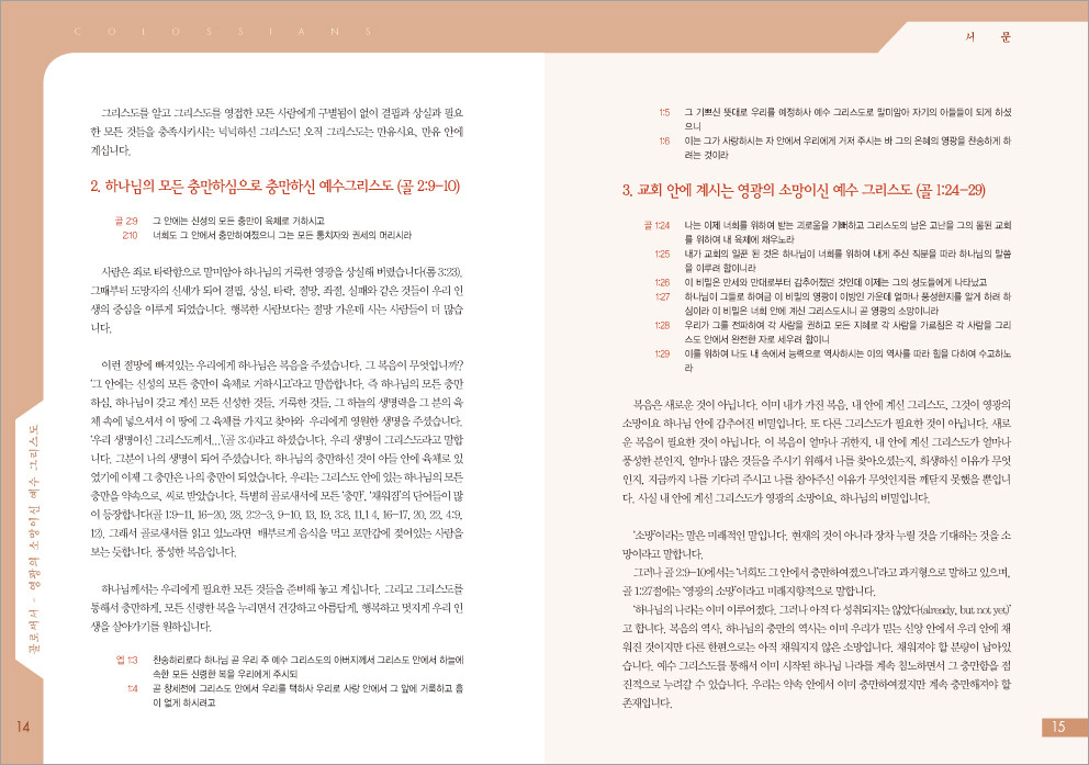 보통 교정을 컴퓨터 모니터나, 칼라 프린터로 출력해서 보시는 경우 모니터(빛의 색 RGB)와 인쇄물(잉크색 CMYK)에는 약간의 차이가 있습니다. 각 교회에서 사용되는 칼라 프린트도 옵셋 인쇄와는 인쇄 방식이 조금 달라 색상의 차이가 있습니다. 특히 종이의 재질(모조지, 아트지, 고급용지)에 의한 색의 차이도 발생할 수 있습니다.