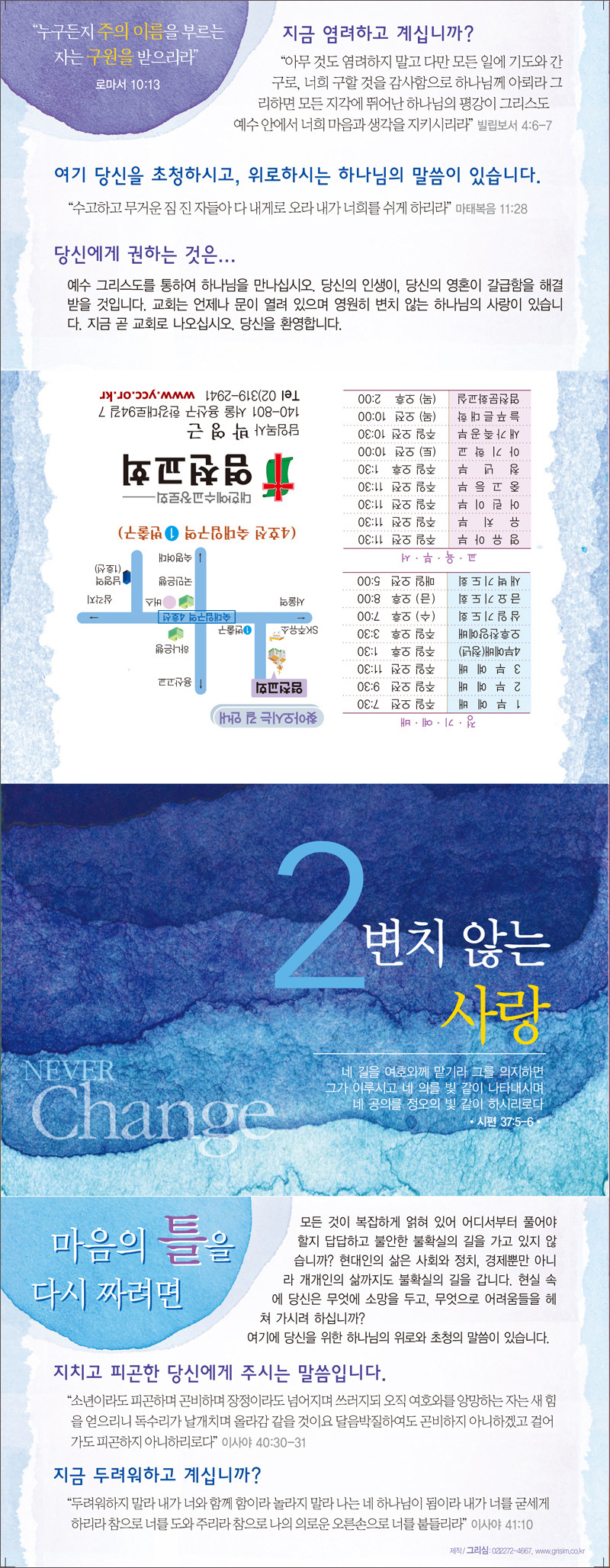 저희 그리심에서 디자인에 더 많은 신경을 쓰다보면 오·탈자를 미처 확인 못할 때가 있습니다. 특히 내용을 전화로 불러주시거나 부득이하게 텍스트를 저희가 타이핑했을 경우 더욱 철저하게 교정을 봐주셔야 합니다.