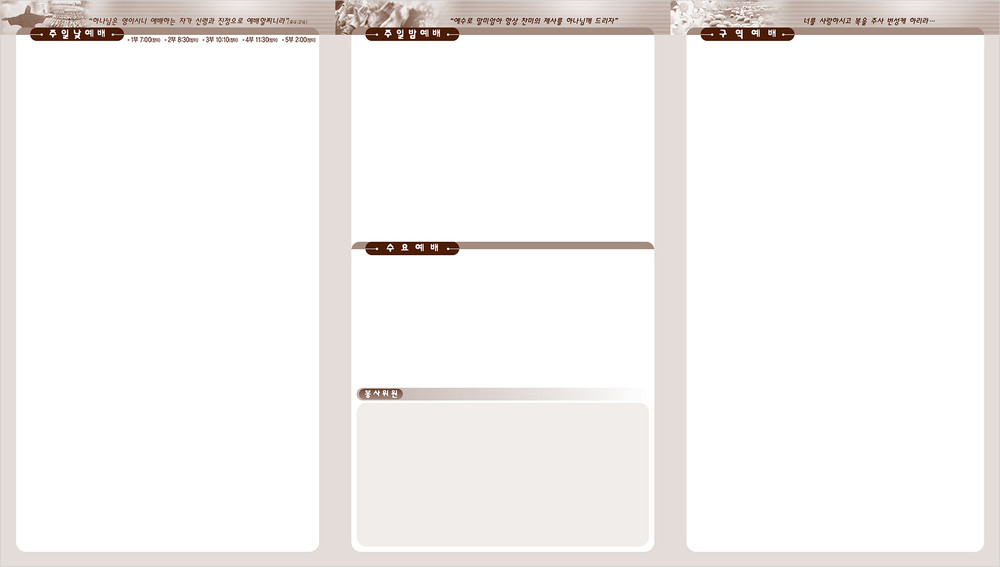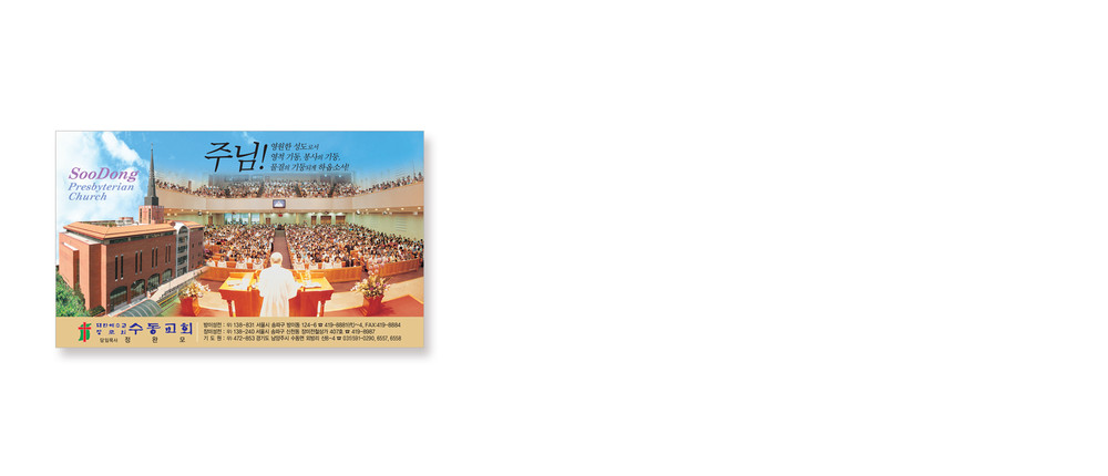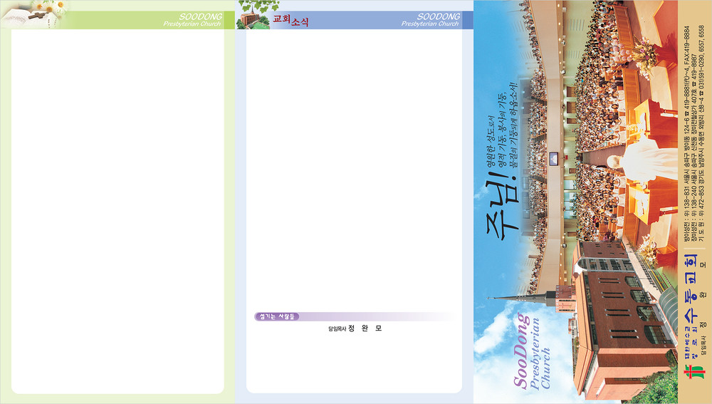 모든 디자인이 완료된 후 현재 교회가 사용중인 한글파일을 보내주시면, 새로운 주보에 맞추어 인쇄가 가능하도록 한글파일을 제작해드리고 있습니다. (한글작업 요청시 약 1-3일 정도의 시간이 소요되오니 참고해 주시기 바랍니다.)