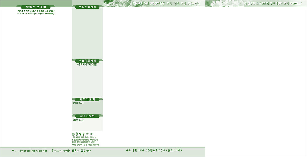 모든 디자인이 완료된 후 현재 교회가 사용중인 한글파일을 보내주시면, 새로운 주보에 맞추어 인쇄가 가능하도록 한글파일을 제작해드리고 있습니다. (한글작업 요청시 약 1-3일 정도의 시간이 소요되오니 참고해 주시기 바랍니다.)