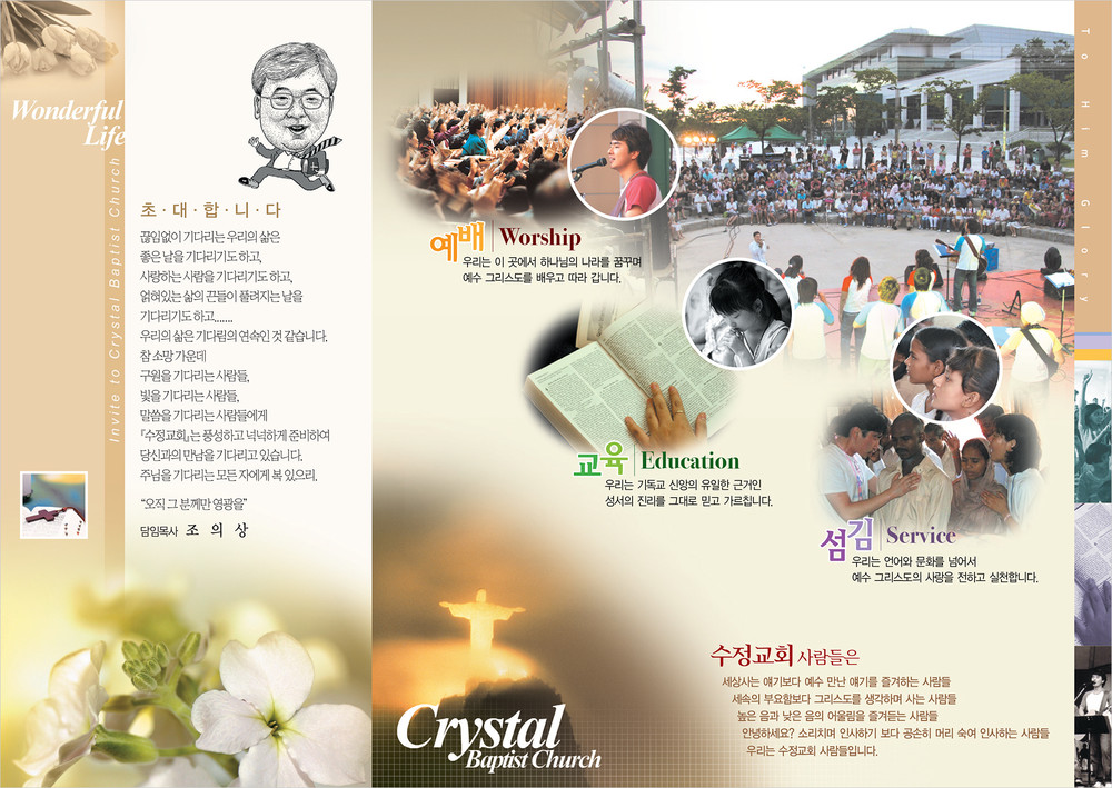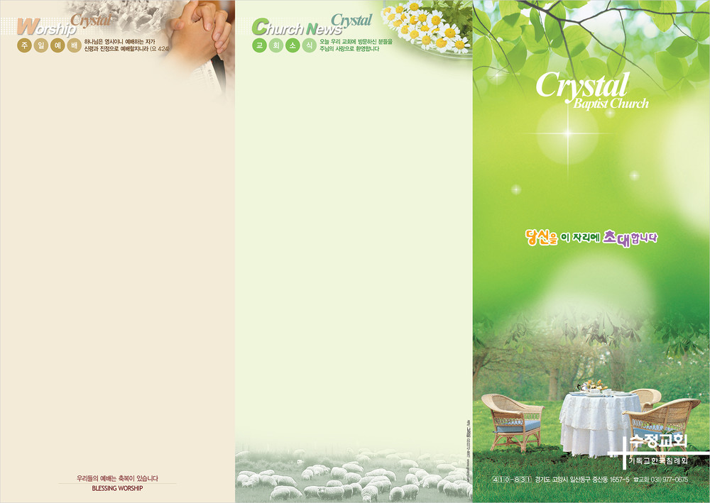모든 디자인이 완료된 후 현재 교회가 사용중인 한글파일을 보내주시면, 새로운 주보에 맞추어 인쇄가 가능하도록 한글파일을 제작해드리고 있습니다. (한글작업 요청시 약 1-3일 정도의 시간이 소요되오니 참고해 주시기 바랍니다.)