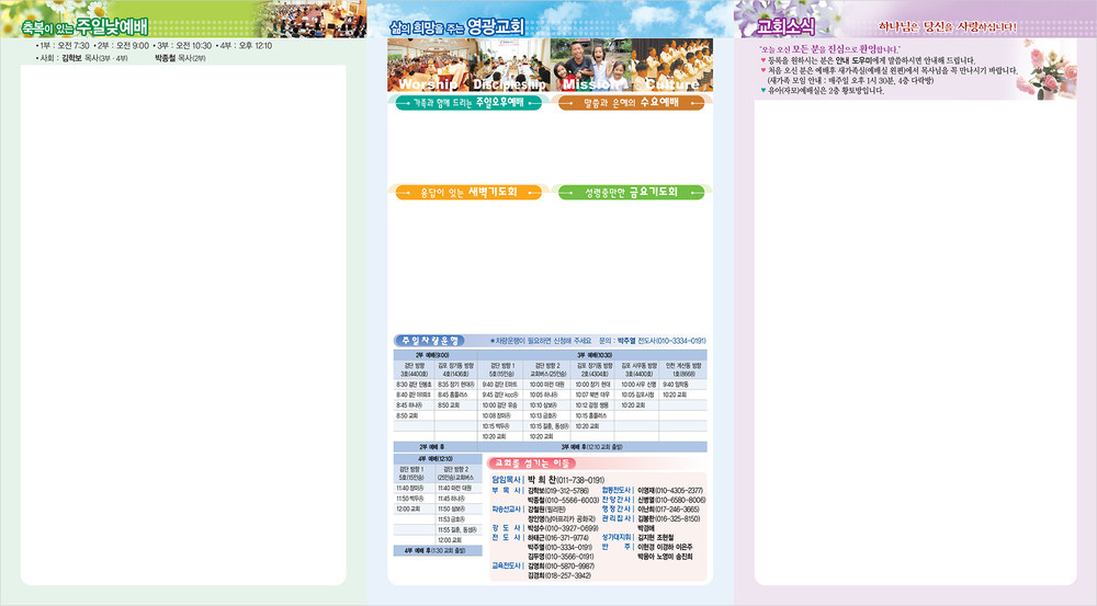 모든 디자인이 완료된 후 현재 교회가 사용중인 한글파일을 보내주시면, 새로운 주보에 맞추어 인쇄가 가능하도록 한글파일을 제작해드리고 있습니다. (한글작업 요청시 약 1-3일 정도의 시간이 소요되오니 참고해 주시기 바랍니다.)