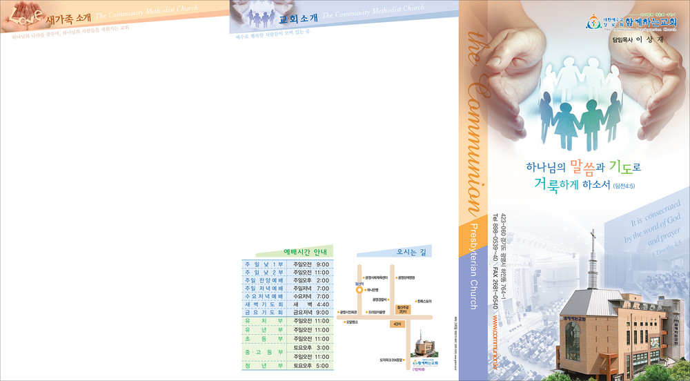모든 디자인이 완료된 후 현재 교회가 사용중인 한글파일을 보내주시면, 새로운 주보에 맞추어 인쇄가 가능하도록 한글파일을 제작해드리고 있습니다. (한글작업 요청시 약 1-3일 정도의 시간이 소요되오니 참고해 주시기 바랍니다.)