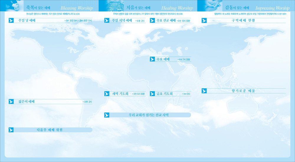 모든 디자인이 완료된 후 현재 교회가 사용중인 한글파일을 보내주시면, 새로운 주보에 맞추어 인쇄가 가능하도록 한글파일을 제작해드리고 있습니다. (한글작업 요청시 약 1-3일 정도의 시간이 소요되오니 참고해 주시기 바랍니다.)