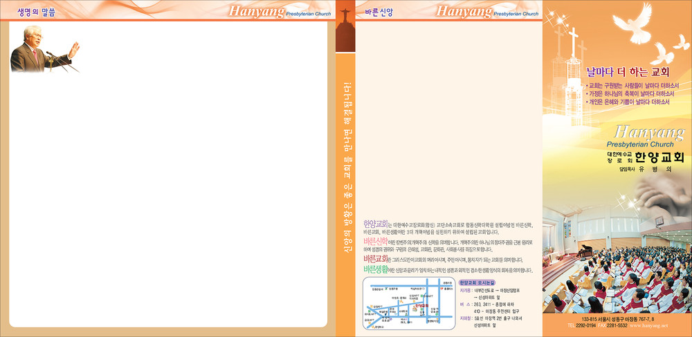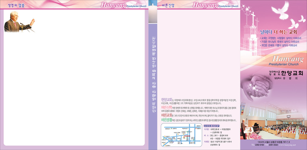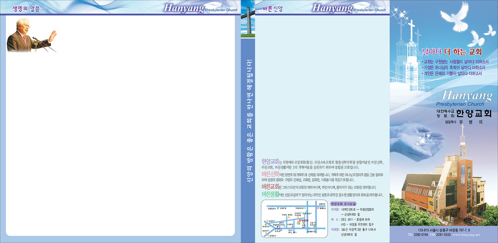 모든 디자인이 완료된 후 현재 교회가 사용중인 한글파일을 보내주시면, 새로운 주보에 맞추어 인쇄가 가능하도록 한글파일을 제작해드리고 있습니다. (한글작업 요청시 약 1-3일 정도의 시간이 소요되오니 참고해 주시기 바랍니다.)
