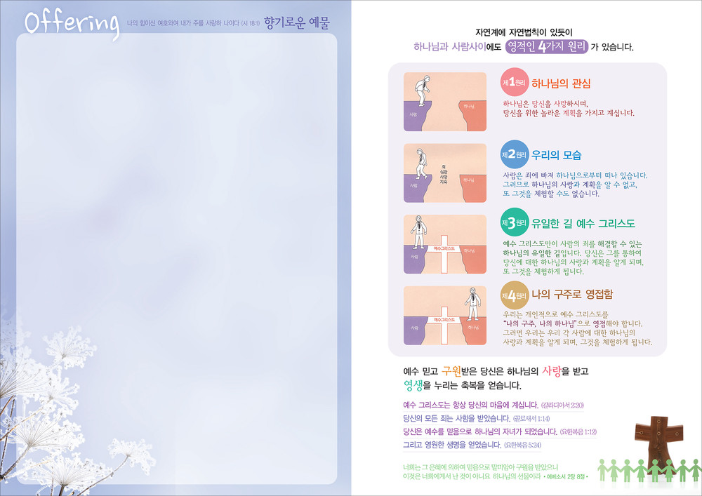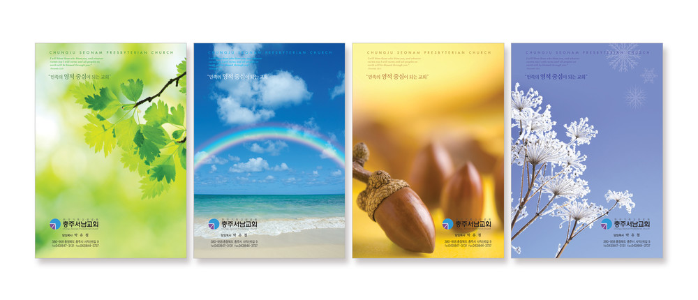 보통 교정을 컴퓨터 모니터나, 칼라 프린터로 출력해서 보시는 경우 모니터(빛의 색 RGB)와 인쇄물(잉크색 CMYK)에는 약간의 차이가 있습니다. 각 교회에서 사용되는 칼라 프린트도 옵셋 인쇄와는 인쇄 방식이 조금 달라 색상의 차이가 있습니다. 특히 종이의 재질(모조지, 아트지, 고급용지)에 의한 색의 차이도 발생할 수 있습니다.