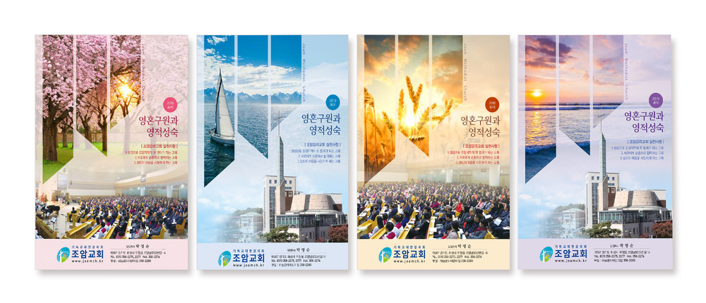 보통 교정을 컴퓨터 모니터나, 칼라 프린터로 출력해서 보시는 경우 모니터(빛의 색 RGB)와 인쇄물(잉크색 CMYK)에는 약간의 차이가 있습니다. 각 교회에서 사용되는 칼라 프린트도 옵셋 인쇄와는 인쇄 방식이 조금 달라 색상의 차이가 있습니다. 특히 종이의 재질(모조지, 아트지, 고급용지)에 의한 색의 차이도 발생할 수 있습니다.