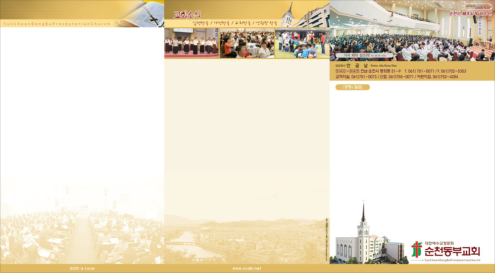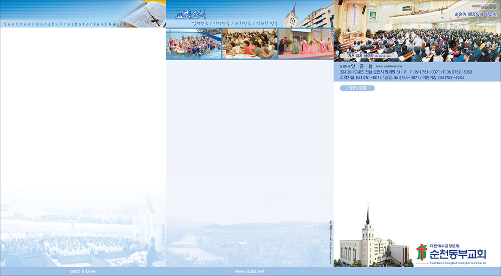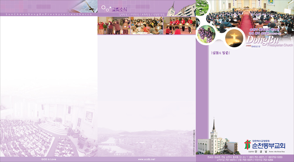 모든 디자인이 완료된 후 현재 교회가 사용중인 한글파일을 보내주시면, 새로운 주보에 맞추어 인쇄가 가능하도록 한글파일을 제작해드리고 있습니다. (한글작업 요청시 약 1-3일 정도의 시간이 소요되오니 참고해 주시기 바랍니다.)