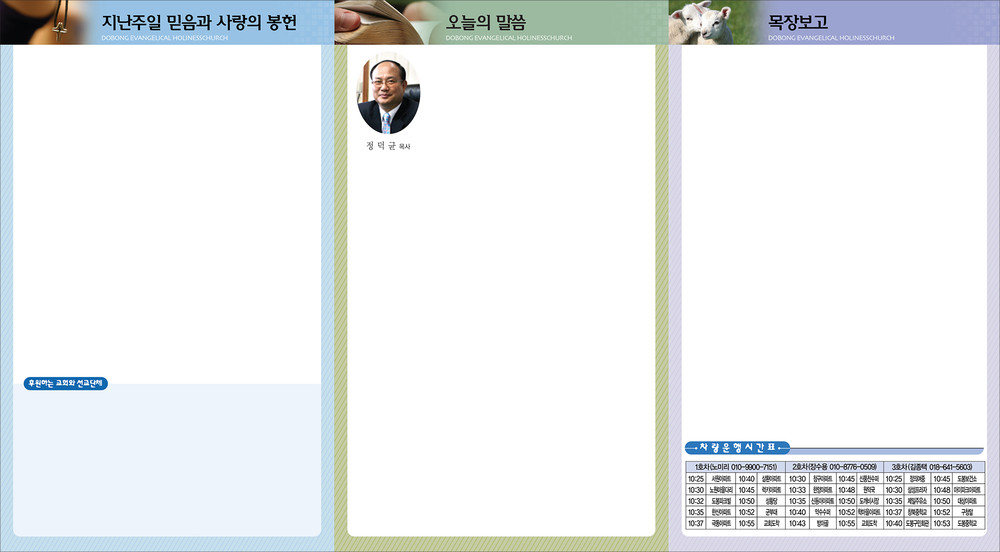 모든 디자인이 완료된 후 현재 교회가 사용중인 한글파일을 보내주시면, 새로운 주보에 맞추어 인쇄가 가능하도록 한글파일을 제작해드리고 있습니다. (한글작업 요청시 약 1-3일 정도의 시간이 소요되오니 참고해 주시기 바랍니다.)