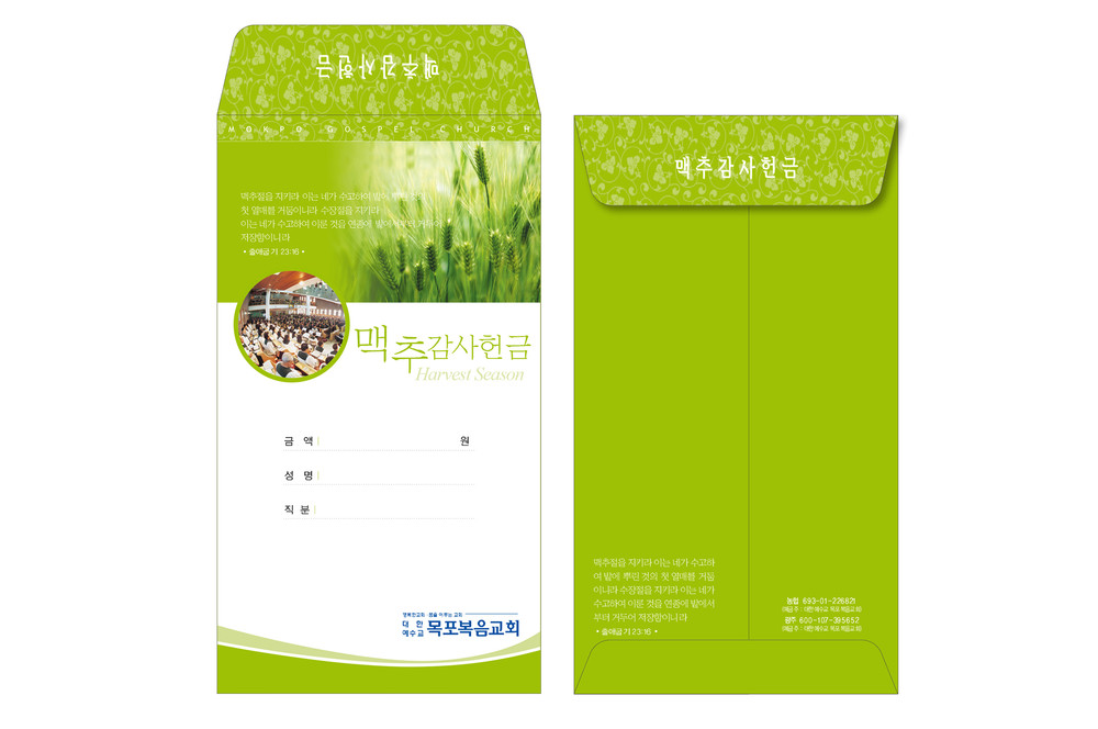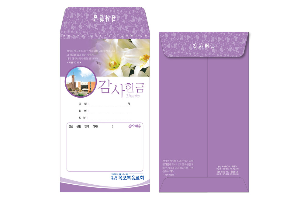 ►일회용 봉투(자켓형)는 6.000매 기준- 여러종류 제작가능 최대6종 (예)감사, 장학, 건축, 선교, 십일조, 주정×1.000매