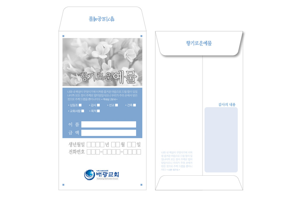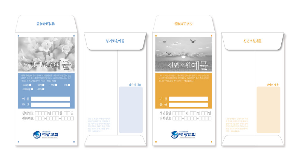 ►일회용 봉투(자켓형)는 6.000매 기준- 여러종류 제작가능 최대6종 (예)감사, 장학, 건축, 선교, 십일조, 주정×1.000매