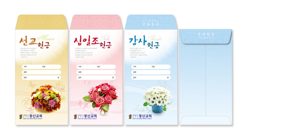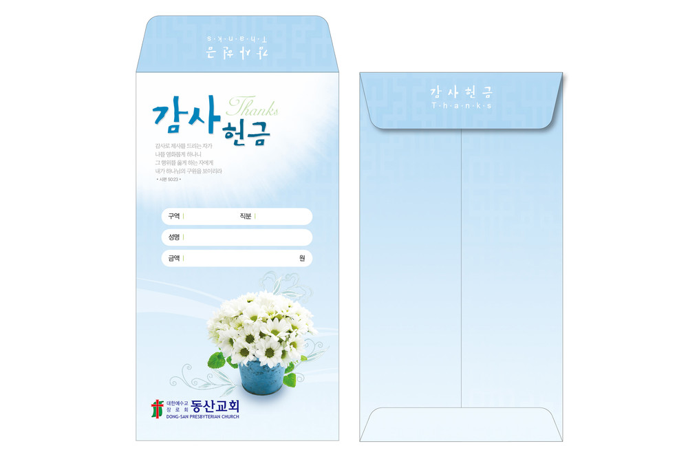 ►일회용 봉투(자켓형)는 6.000매 기준- 여러종류 제작가능 최대6종 (예)감사, 장학, 건축, 선교, 십일조, 주정×1.000매