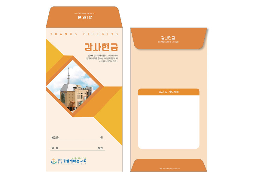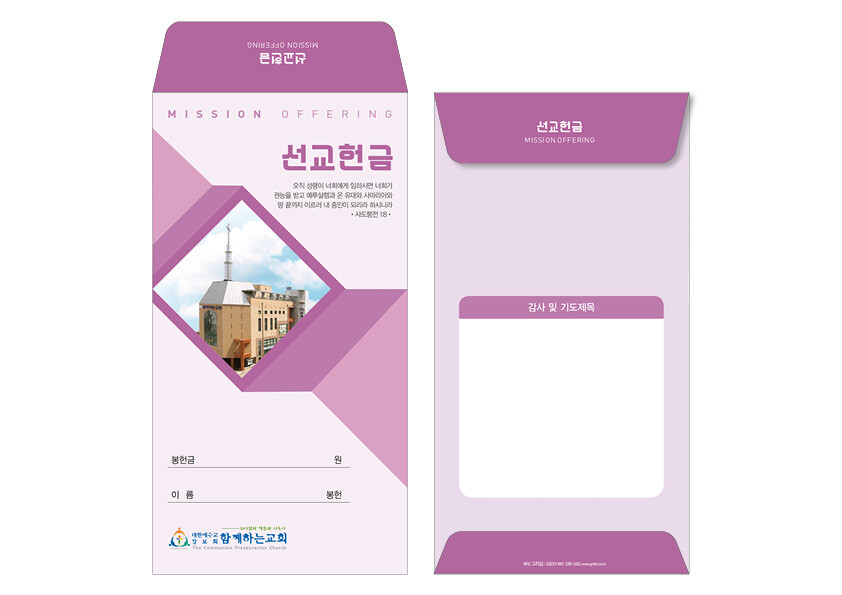 ►일회용 봉투(자켓형)는 6.000매 기준- 여러종류 제작가능 최대6종 (예)감사, 장학, 건축, 선교, 십일조, 주정×1.000매