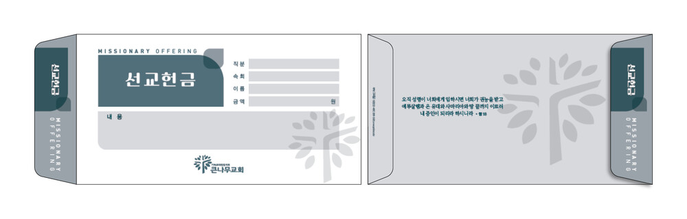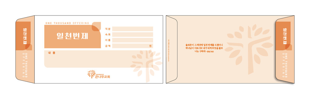 ►일회용 봉투(규격형)는 6.000매 기준- 여러종류 제작가능 최대6종 (예)감사, 장학, 건축, 선교, 십일조, 주정×1.000매